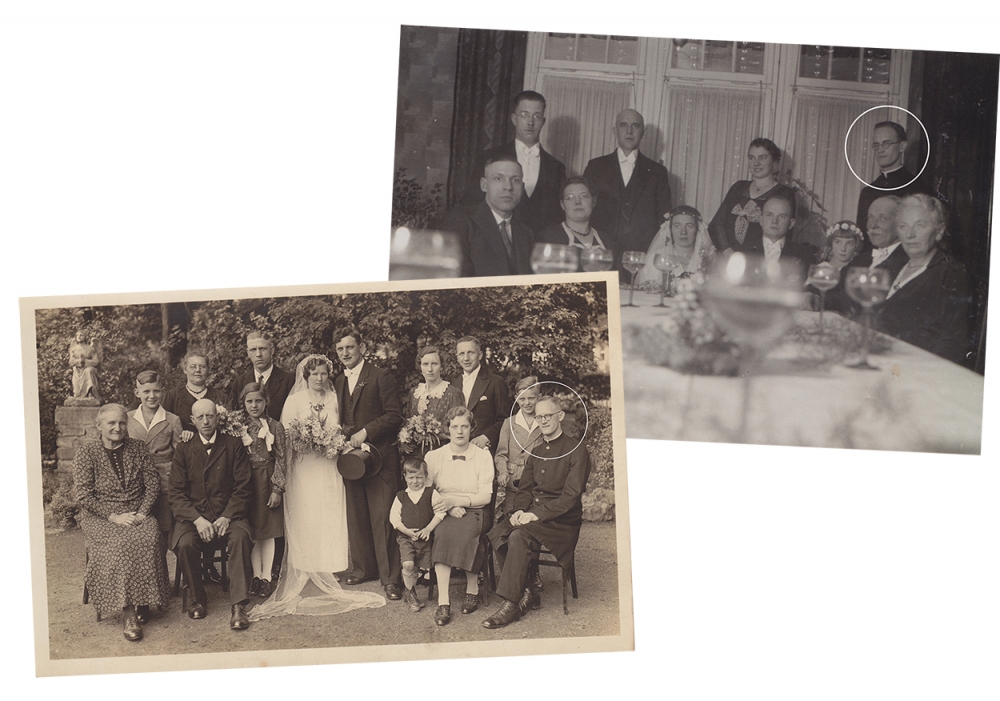 Fotos von FamilienfeiernJetzt hole ich zwei große Fotoabzüge hervor, die zwei Hochzeitsgesellschaften zeigen, beide 1938, auf beiden ist als einer der Gäste auch Pater Kaiser zu erkennen. Elli Frieling kennt beide Bilder. Auf einem der beiden Fotos, anlässlich der Trauung von Friedrich Kaisers Schwester Gertrud und ihrem Bräutigam Paul in Burgsteinfurt entstanden, gehörten auch Josef, Reinhold und Elli mit ihren Eltern zur abgelichteten Festgesellschaft. Elli, zehn Jahre alt, hat ihr dickes dunkles Haar zu Zöpfen geflochten, in denen weiße Schleifen stecken. Sie erinnert sich, dass damals, im Sommer 1938, schon „Krieg in der Luft“ gelegen habe. Doch nach dem Tod seines Vaters habe sich Friedrich Kaiser ganz auf eine baldige Auswanderung nach Peru konzentriert. Schon zweimal sei von irgendeiner Behörde oder Schifffahrtsgesellschaft die Erlaubnis zur Überfahrt kurzfristig wieder zurückgezogen worden. Warum er denn deswegen so nervös sei, habe Ellis Mutter ihn gefragt. „Weil am Ende Hitler noch einen kleinen Krieg anzettelt, und dann komme ich wohl gar nicht mehr weg!“ – so habe der Onkel erwidert. Das würde sie freuen, so Ellis Mutter, denn wäre ihr Bruder erst einmal ausgewandert, würde man sich wohl nie mehr wiedersehen.