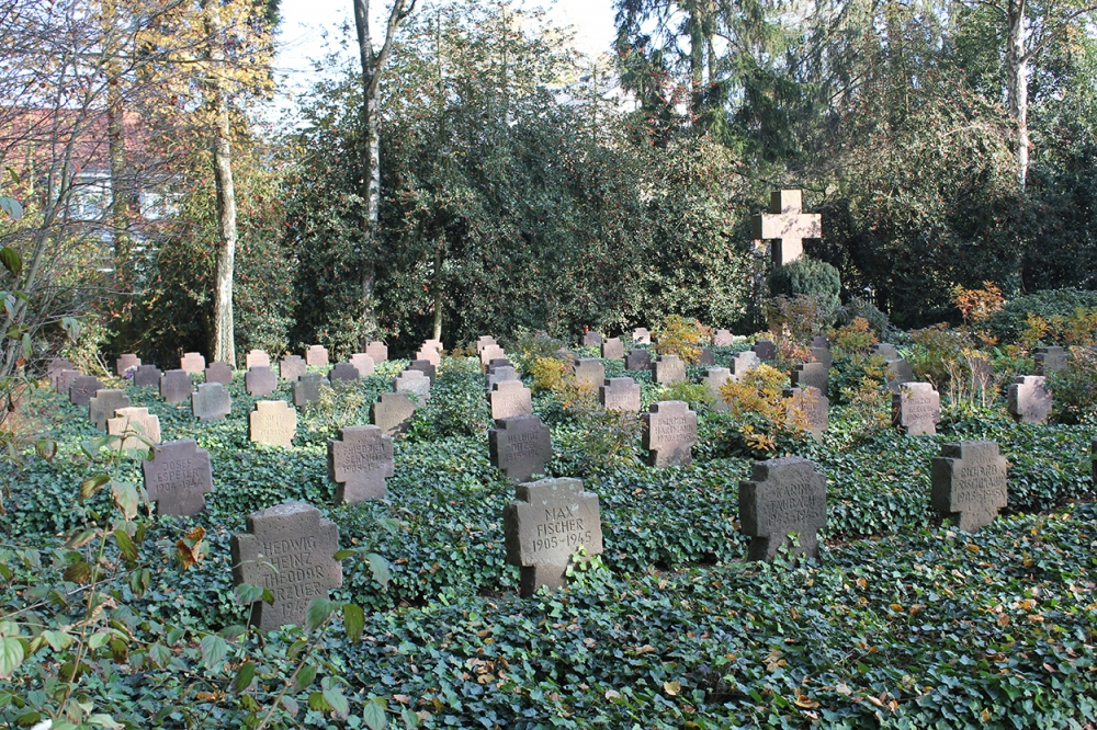 KriegsgraeberNach dem „Weltkrieg“ gab es bekanntlich nicht lange danach den „Zweiten Weltkrieg“. An ihn werde ich erinnert, als ich den alten Friedhof, der in der Abendstille eigentlich noch zum Bleiben einlädt, auf einem Pfad in Richtung Mühlenweg verlassen will. Denn hier befindet sich ein eigenes Gräberfeld, auf dem zahlreiche Steinkreuze an Dülmener Bombenopfer von 1945 erinnern. Ich krame noch mal die Fotokopie des Kaiser-Briefes von 1986 hervor und finde die Stelle, die ganz gut hierher passt: „Am 24. oder 25. März 1945 brachte die genannte Zeitung auf der ersten Seite die große Schlagzeile: ‚Dülmen bombardeado’. Dennoch ahnte ich sozusagen ‚nichts Böses’, sondern war überzeugt, dass die Treibstofflager der Luftwaffe im Osthoff angegriffen worden seien, von denen ich wusste. Monate später erfuhr ich dann die Wahrheit“ Friedrich Kaiser schildert dann, wie er, damals noch in Lima, im Sommer 1945 Post von einem französischen Priester aus der Normandie erhielt, der den Kriegsgefangenen Josef Frieling, einen Neffen Kaisers, kennen gelernt hatte und diesem nun den Gefallen tat, Verbindung zum Onkel in Peru aufzunehmen. Josef Frieling war erst bei Kriegsende in Dülmen in Gefangenschaft  geraten. „Er schrieb mir, dass von unserer Stadt nichts mehr stehe und dass er über seine (und meine) Verwandten nichts wisse.“
